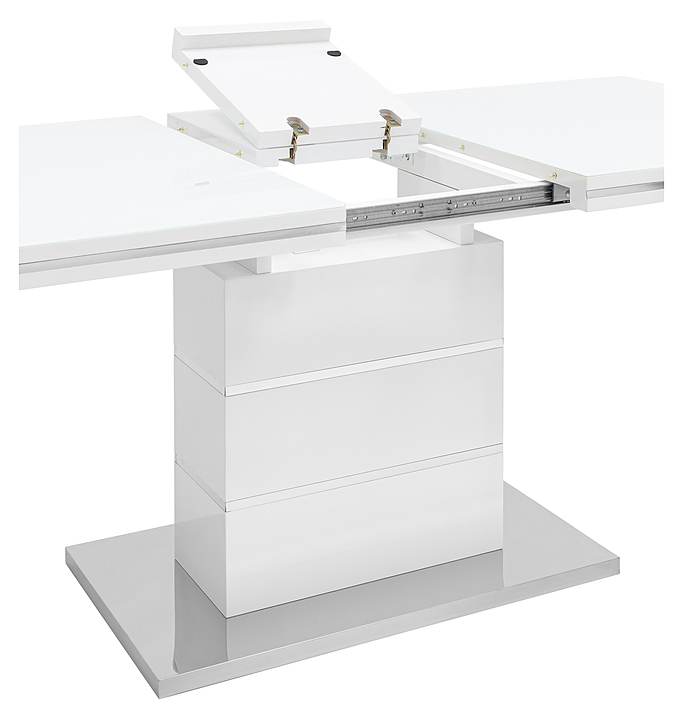 Обеденный стол Stool Group Глазго раскладной 160-215*90 глянцевый белый предназначен для использования на даче, дома, для кухни, а также в кафе и ресторанах. Модель выполнена в современном стиле. Столешница изготовлена из практичного МДФ. Дополнительные характеристики: