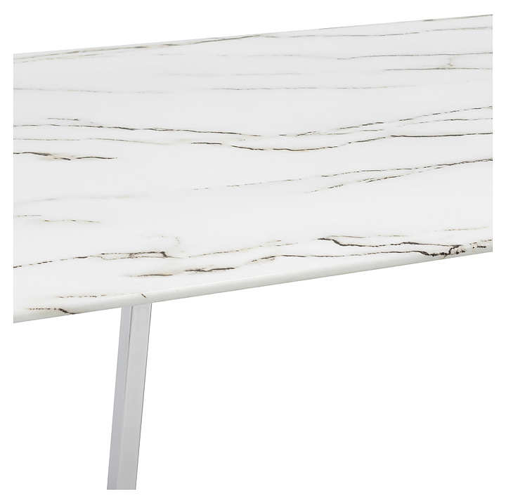 Обеденный стол Stool Group Даллас 160*90 белый стеклянный предназначен для использования на даче, дома, для кухни, а также в кафе и ресторанах. Модель выполнена в современном стиле. Столешница изготовлена из стекла с рисунком под мрамор, основание из металла, покрыто порошковой краской и крепится к плите МДФ с обратной стороны столешницы. Особенности: