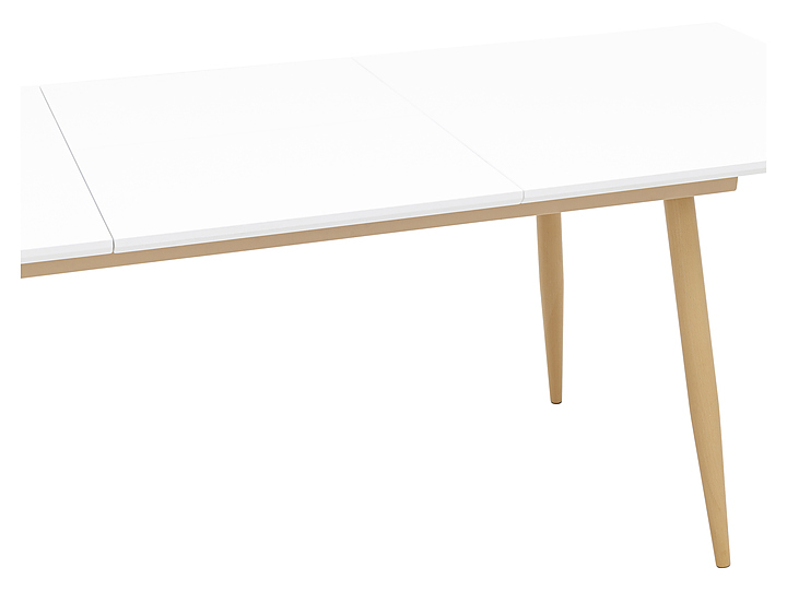 Обеденный стол Stool Group Стокгольм раскладной 160-220*90 белый предназначен для использования на даче, дома, для кухни, а также в кафе и ресторанах. Модель выполнена в стиле минимализма. Столешница изготовлена из МДФ, ножки - из металла, покрашены в цвет светлого дерева. Дополнительные характеристики: