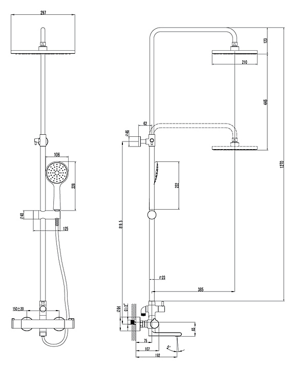 Душевая стойка LEMARK Yeti LM7862C термостатический, с верхней душевой лейкой "Тропический дождь", с поворотным изливом, хром