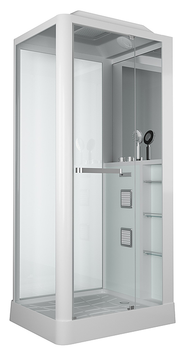 Душевая кабина Grossman GR122 80х100 см сочетает в себе простоту и функциональность. Модель оснащена распашной дверью на стальных петлях из безопасного стекла. Невысокий поддон позволяет комфортно входить и выходить из кабины. Для безопасности пользователя внутренняя поверхность поддона имеет нескользящее покрытие. Верхний и ручной душ, приятная для глаз подсветка и сенсорный пульт управления опциями делают использование сантехнического прибора удобным и комфортным. Специально закаленное стекло дверки и стенок предотвращает возможность получения травм при случайном разрушении. На трех вместительных полочках можно расположить шампунь, гель для душа и прочие гигиенические принадлежности. Большое зеркало делает удобным проведение косметических процедур. Поддон выполнен из ABS-пластик, обладающего небольшим весом. Особенности: