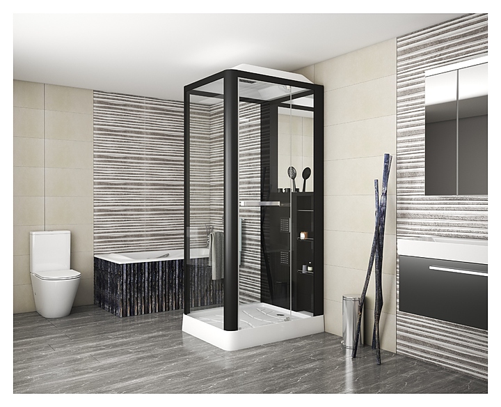 Душевая кабина Grossman GR223 90х110 см в черных тонах прекрасно дополнит любой интерьер ванной комнаты. Модель оснащена распашной дверью на стальных петлях из безопасного стекла, которая надежно защищает помещение от попадания воды. Невысокий поддон позволяет комфортно входить и выходить из кабины. Для безопасности пользователя внутренняя поверхность поддона имеет нескользящее покрытие. Верхний и ручной душ, приятная для глаз подсветка и сенсорный пульт управления опциями делают использование сантехнического прибора удобным и комфортным. На трех вместительных полочках можно расположить шампунь, гель для душа и прочие гигиенические принадлежности. Большое зеркало делает удобным проведение косметических процедур. Поддон выполнен из ABS-пластик, обладающего небольшим весом. Особенности: