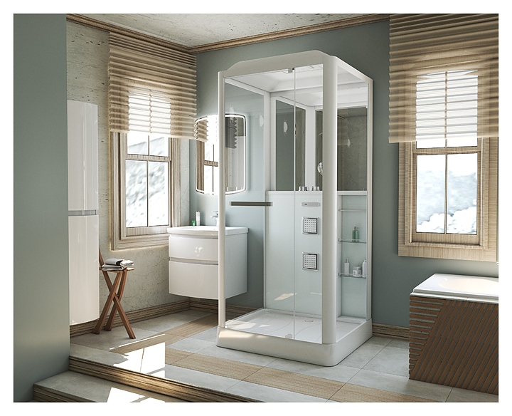 Душевая кабина Grossman GR126 90х100 см предназначена для использования в ванных комнатах. Модель оснащена распашной дверью на стальных петлях из безопасного стекла, устанавливаемой напротив зеркальной стенки. Невысокий поддон позволяет комфортно входить и выходить из кабины. Для безопасности пользователя внутренняя поверхность поддона имеет нескользящее покрытие. На трех вместительных полочках можно расположить шампунь, гель для душа и прочие гигиенические принадлежности. Большое зеркало делает удобным проведение косметических процедур. Любителей музыки порадует FM радио, управление которым происходит при помощи современного сенсорного пульта. Поддон выполнен из ABS-пластик, обладающего небольшим весом. Особенности: