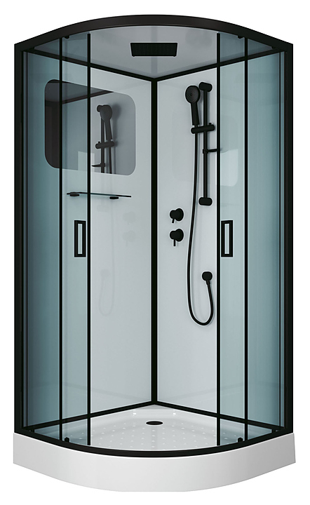 Душевая кабина Niagara NG-6902-01 BLACK предназначена для использования в ванных комнатах. Благодаря угловой конструкции и поддону в форме четверти круга модель можно вписать даже в ванные комнаты небольшой площади. Кабина оснащена двумя раздвижными дверцами, крышей, полкой для аксессуаров и зеркалом. Изделие отличается быстрым монтажом благодаря безсиликоновой сборке Quick staple. Особенности: