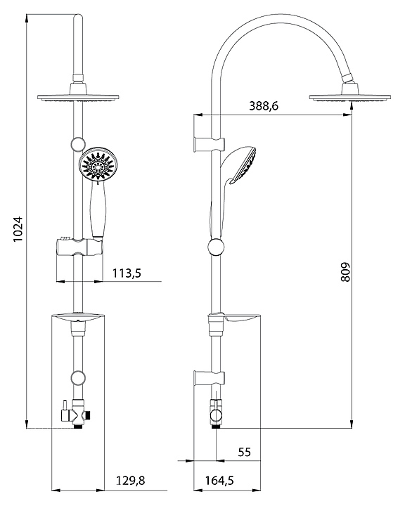 Душевая стойка LEMARK LM8801C без смесителя, с верхней душевой лейкой "Тропический дождь", хром