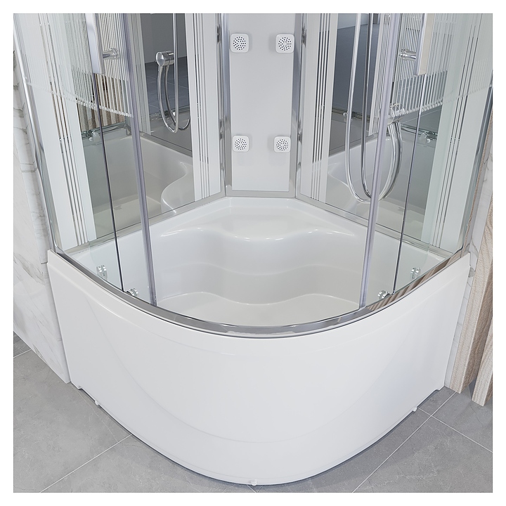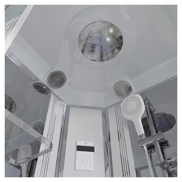 Душевая кабина Niagara Ultra NG-709-01 предназначена для использования в ванных комнатах. Благодаря изящной форме и изысканному дизайну кабина станет украшением ванной комнаты, а угловая конструкция в форме четверти круга легко впишется на небольшой площади. Душевая кабина оснащена 2х секционными раздвижными дверями, крышей, верхнем душем, пультом управления с радио, гидромассажем и полочкой. Профиль изготовлен из анодированного алюминия в хроме, двери из закаленного прозрачного стекла с рисунком, задняя стенка - из закаленного зеркального стекла, центральная панель - из белого закаленного стекла. Комплектация: