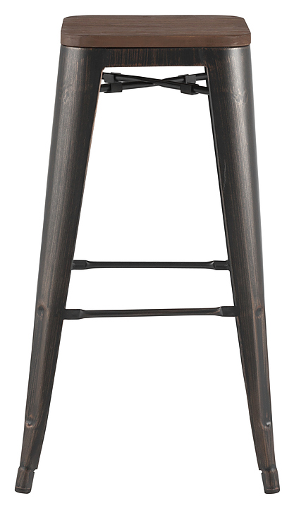 Барный стул Stool Group TOLIX WOOD черный патина золото предназначен для обустройства обеденных групп в кухнях, столовых, гостиных, а также в кафе и ресторанах. Модель оснащена жёстким сиденьем и жесткой спинкой. Каркас изготовлен из стали, сиденье из тёмного дерева. Особенности: