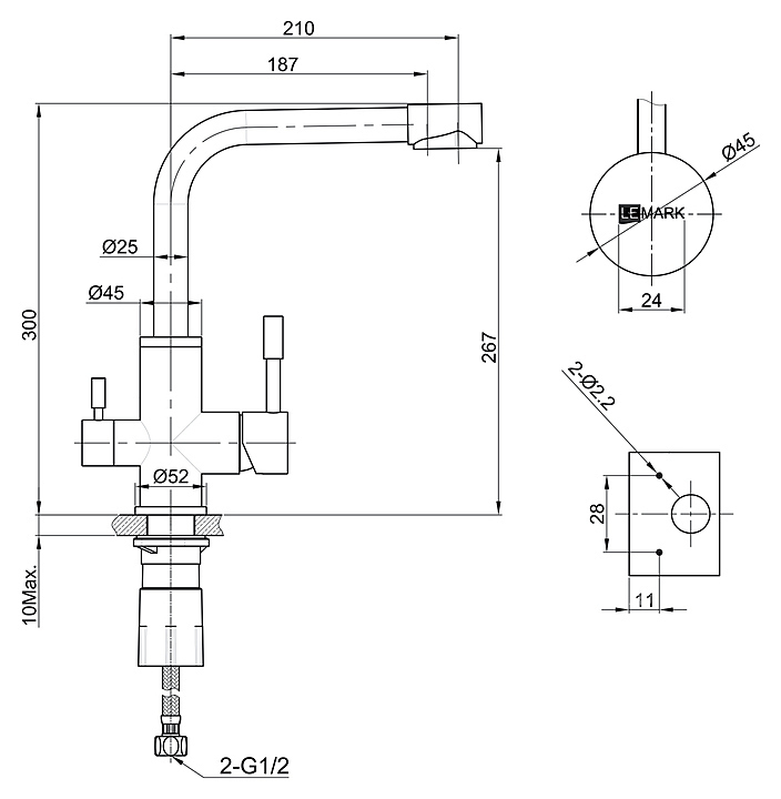 Смеситель LEMARK Expert LM5061G предназначен для использования в кухонных помещениях для подачи горячей и холодной воды. Серия Expert выполнена в стиле модерн. Модель оснащена керамическим картриджем, обеспечивающим плавный ход рычага смесителя, контроль и точность при выборе напора и температуры воды, а также керамической кран-буксой для крана с питьевой водой. Изделие выполнено из высококачественной нержавеющей стали, которая отличается прочностью, долговечностью и устойчивостью к перепадам температур. В комплект поставки входят крепления, гибкая подводка, аэратор, переходник для подключения шланга от фильтра с питьевой водой и металлические рукоятки. Особенности: