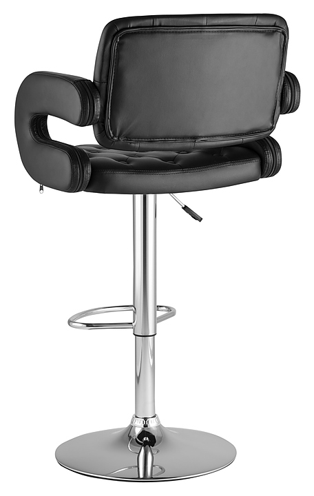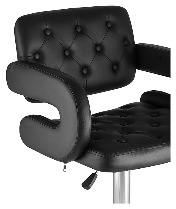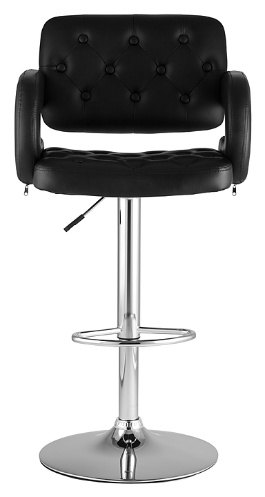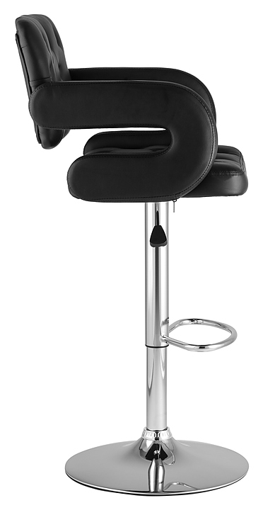 Барный стул Stool Group Бентли черный предназначен для обустройства барных зон в кухнях, столовых, гостиных, а также в кафе и ресторанах. Модель оснащена широким сиденьем, высокой полноценной спинкой, объемными дугообразными подлокотниками и радиусной подножкой. Каркас и ножка изготовлены из хромированного металла, обивка сиденья из PU-кожи - близкий аналог натурального материала с высокой прочностью, износостойкостью и естественной фактурой. Особенности: