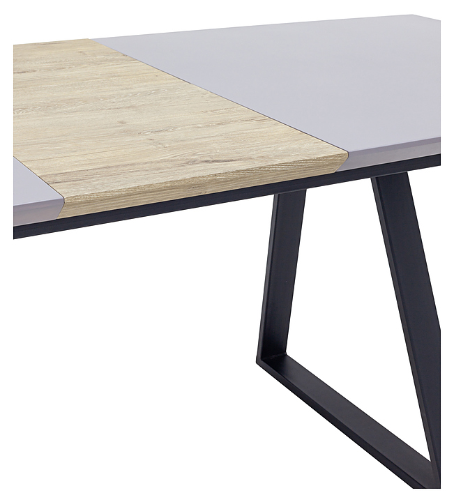 Обеденный стол Stool Group Детройт раскладной 160-200*90 серый предназначен для использования на даче, дома, для кухни, а также в кафе и ресторанах. Модель выполнена в современном стиле. Столешница изготовлена из сочетания МДФ и элементов металла, ножки - из металла, дополнительная вкладка из МДФ с бумажным шпоном цвета беленого дуба. Дополнительные характеристики: