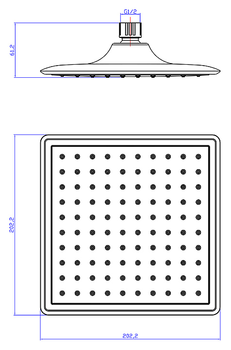 Душевая лейка верхняя LEMARK LM8035C квадратная, 200 мм, хром