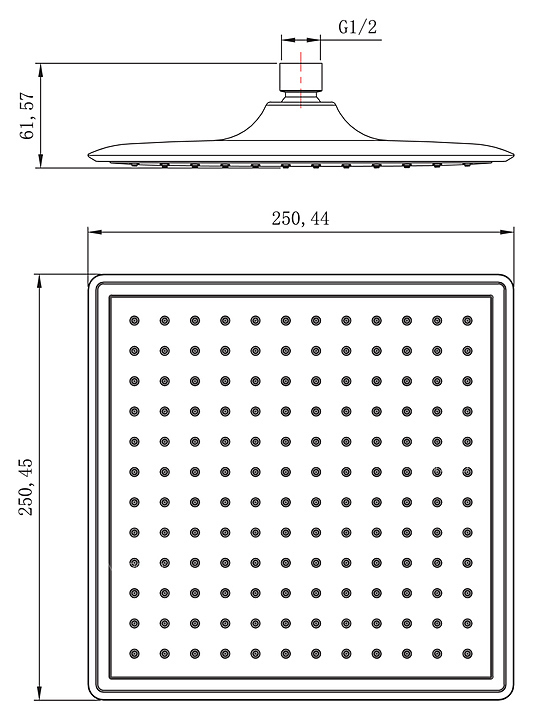Душевая лейка верхняя LEMARK LM8036C квадратная, 250 мм, хром