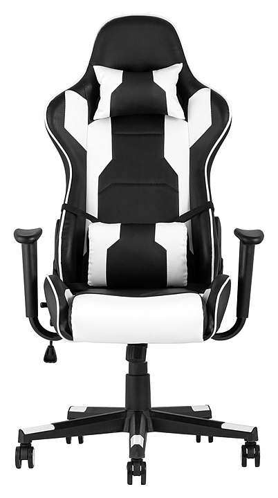Спортивное компьютерное кресло TopChairs Diablo белое предназначено для долгой работы или игры за компьютером на даче, дома, а также в офисах. Модель оснащена полиуретановыми колесами, подлокотниками, механизмом качания TopGun, системой регулировки по высоте газ лифт III класса и ортопедическими подушками для поддержки шеи и пояса. Дополнительные характеристики: