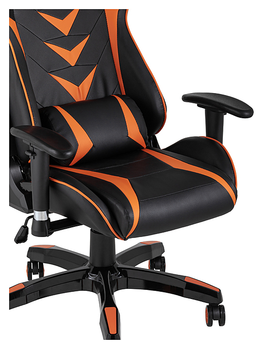 Спортивное компьютерное кресло TopChairs Corvette оранжевое предназначено для долгой работы или игры за компьютером на даче, дома, а также в офисах. Модель оснащена полиуретановыми колесами, подлокотниками, механизмом качания TopGun, системой регулировки по высоте газ лифт III класса и ортопедическими подушками для поддержки шеи и пояса. Дополнительные характеристики: