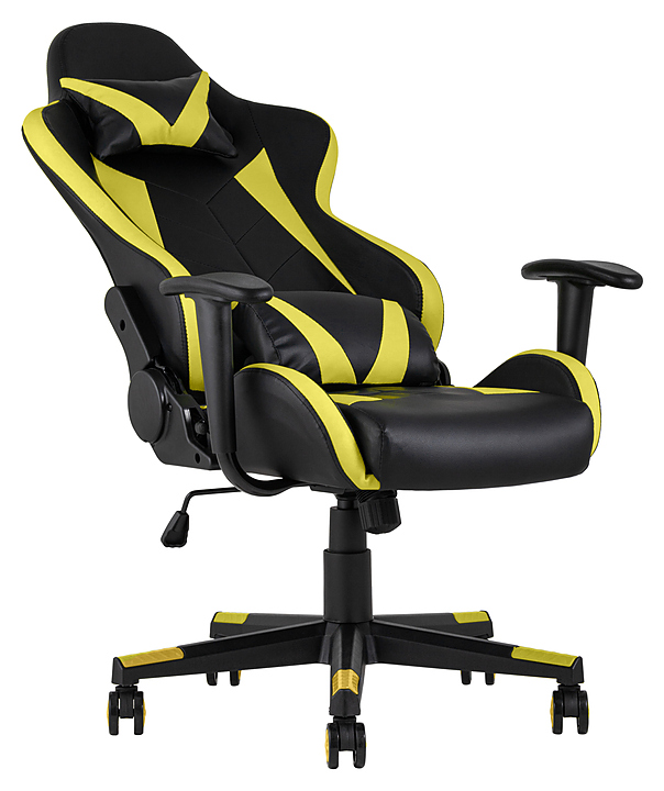 Спортивное компьютерное кресло TopChairs Gallardo желтоепредназначено для долгой работы или игры за компьютером на даче, дома, а также в офисах. Модель оснащена полиуретановыми колесами, подлокотниками, механизмом качания TopGun, системой регулировки по высоте газ лифт III класса и ортопедическими подушками для поддержки шеи и пояса. Дополнительные характеристики: