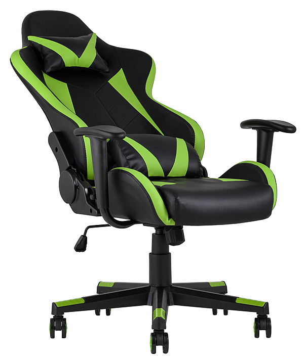 Спортивное компьютерное кресло TopChairs Gallardo зеленое предназначено для долгой работы или игры за компьютером на даче, дома, а также в офисах. Модель оснащена полиуретановыми колесами, подлокотниками, механизмом качания TopGun, системой регулировки по высоте газ лифт III класса и ортопедическими подушками для поддержки шеи и пояса. Дополнительные характеристики: