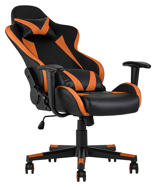 Спортивное компьютерное кресло TopChairs Gallardo оранжевое предназначено для долгой работы или игры за компьютером на даче, дома, а также в офисах. Модель оснащена полиуретановыми колесами, подлокотниками, механизмом качания TopGun, системой регулировки по высоте газ лифт III класса и ортопедическими подушками для поддержки шеи и пояса. Дополнительные характеристики: