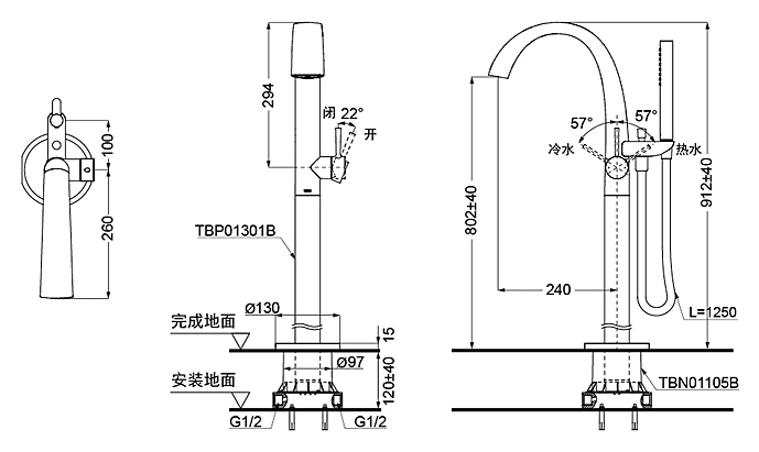 Смеситель для ванны отдельностоящий TOTO Neorest TBP01301R напольный, хром