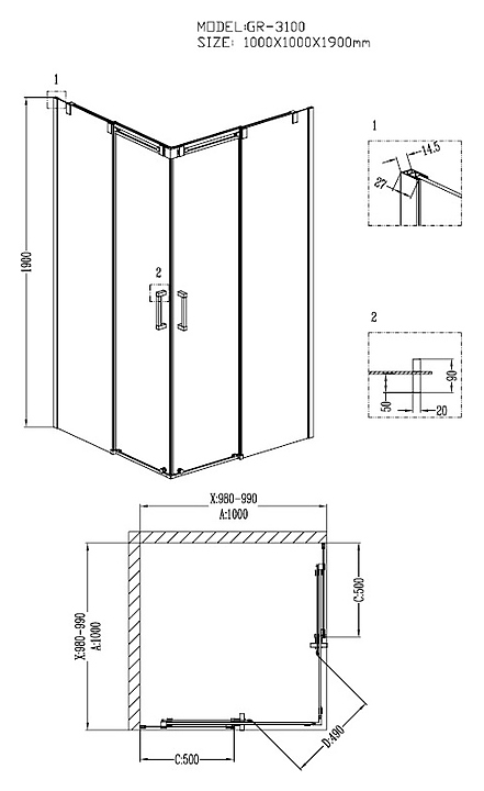 Душевой уголок Grossman Galaxy GR-3100 100х100 см предназначен для использования в ванных комнатах. Кабина оснащена раздвижными дверцами, стенки из каленного стекла с водоотталкивающим покрытием, благодаря чему на них не остаются капли воды или следы от средств гигиены. Профиль выполнен из прочного стального профиля, который устойчив к окислению и появлению коррозии, обеспечивает герметичность и легкость конструкции. Поддон в комплект поставки не входит и приобретается отдельно. Особенности: