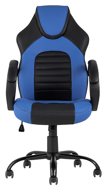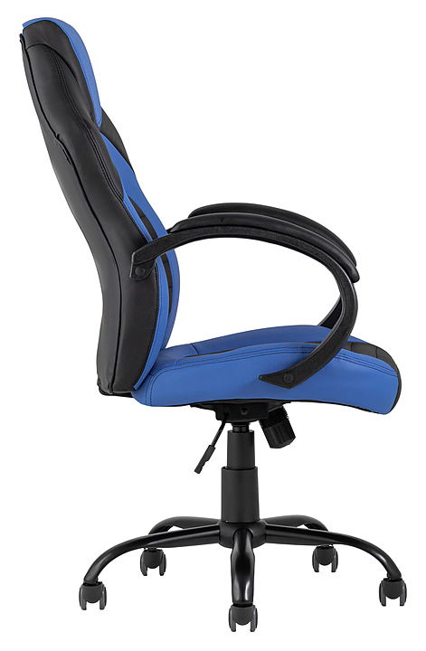 Спортивное компьютерное кресло TopChairs Racer Midi черно-синее предназначено для долгой работы или игры за компьютером на даче, дома, а также в офисах. Модель оснащена полиуретановыми колесами, подлокотниками, механизмом качания Пиастра, системой регулировки по высоте газ лифт III класса и мягким подголовником для поддержки шеи. Дополнительные характеристики: