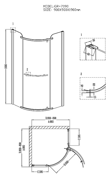 Уголок душевой Grossman Classic GR-7090 90х90 см