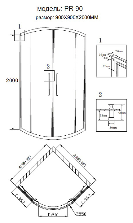Уголок душевой Grossman Pragma PR-90G 90х90 см