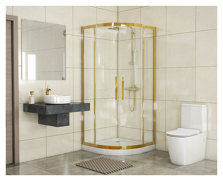 Душевой уголок Grossman Pragma PR-90G 90х90 см предназначен для использования в ванных комнатах. Кабина оснащена раздвижными дверцами, которые закрываются плотно, стенки из каленного стекла с водоотталкивающим покрытием, благодаря чему на них не остаются капли воды или следы от средств гигиены. Профиль в золотистом цвете выполнен из прочного металла, который легко справляется с нагрузкой, устойчив к окислению и появлению коррозии, обеспечивает герметичность и легкость конструкции. Поддон в комплект поставки не входит и приобретается отдельно. Особенности: