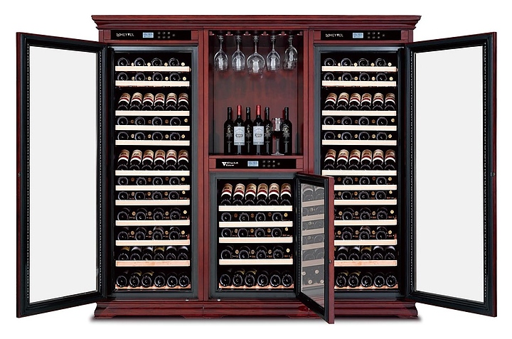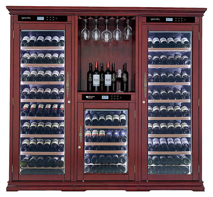 Винный шкаф MEYVEL MV262-WM3-BAR-C предназначен для демонстрации, хранения и создания оптимальных условий для сохранения всех вкусовых свойств вина в бутылках на предприятиях общественного питания, торговли, в барах, ресторанах, специализированных магазинах, частных домах или квартирах. Модель оснащена сенсорной панелью управления, электронным термостатом и светодиодной подсветкой. Корпус выполнен из красного дуба, дверь - из деревянной рамы и тройного стекла с защитой от ультрафиолетовых лучей, полки - из массива бука. Особенности: