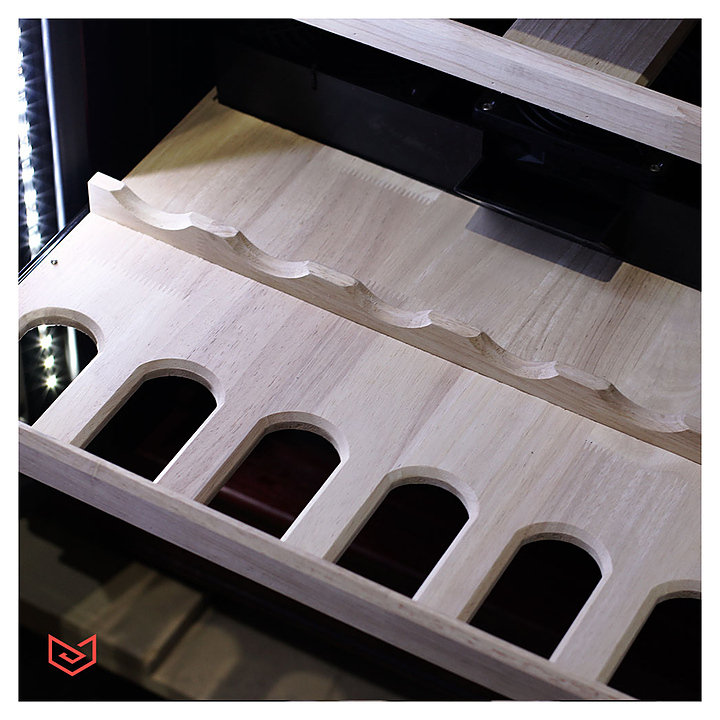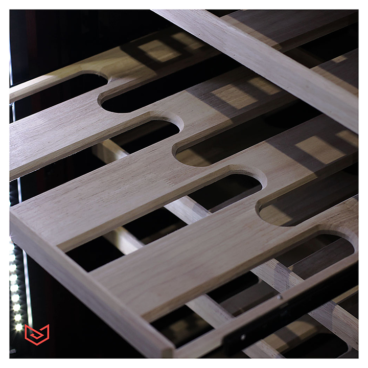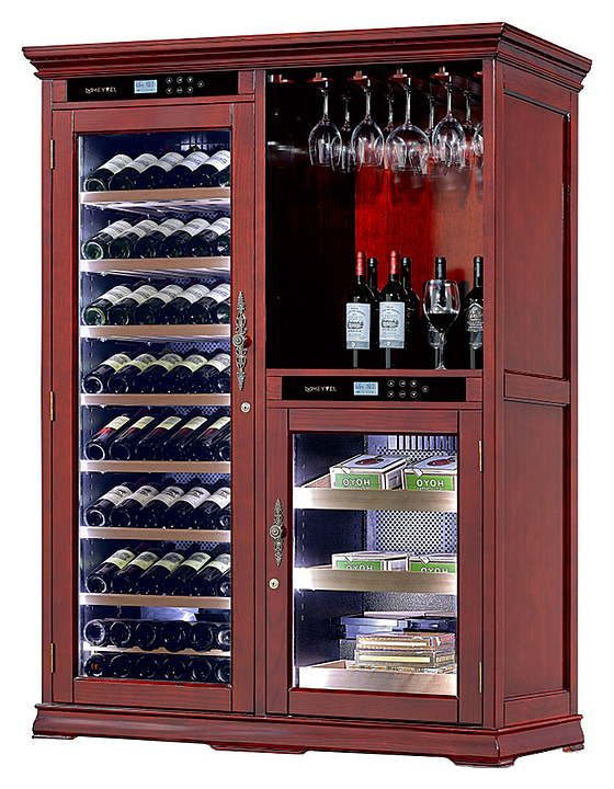 Винный шкаф MEYVEL MV108-WM2-BAR-HUM предназначен для демонстрации, хранения и создания оптимальных условий для сохранения всех вкусовых свойств вина в бутылках на предприятиях общественного питания, торговли, в барах, ресторанах, специализированных магазинах, частных домах или квартирах. Модель оснащена сенсорной панелью управления, электронным термостатом и светодиодной подсветкой. Корпус выполнен из красного дуба, дверь - из деревянной рамы и тройного стекла с защитой от ультрафиолетовых лучей, полки - из массива бука. Особенности: