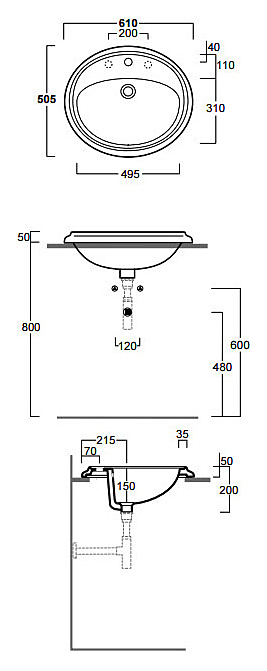 Раковина встраиваемая SIMAS Arcade AR859bi*3 61х50.5 см, три отв. под смеситель, керамика, белый
