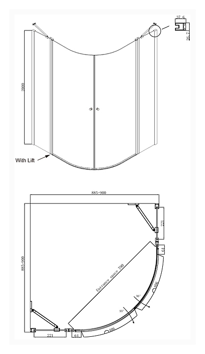 Уголок душевой Ambassador NORD 13011101 90х90 см