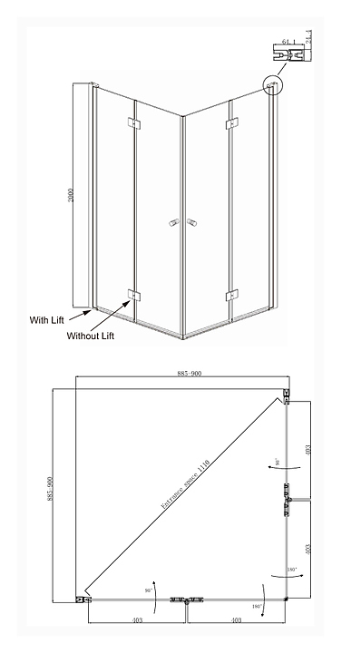 Уголок душевой Ambassador NORD 13011108 90х90 см