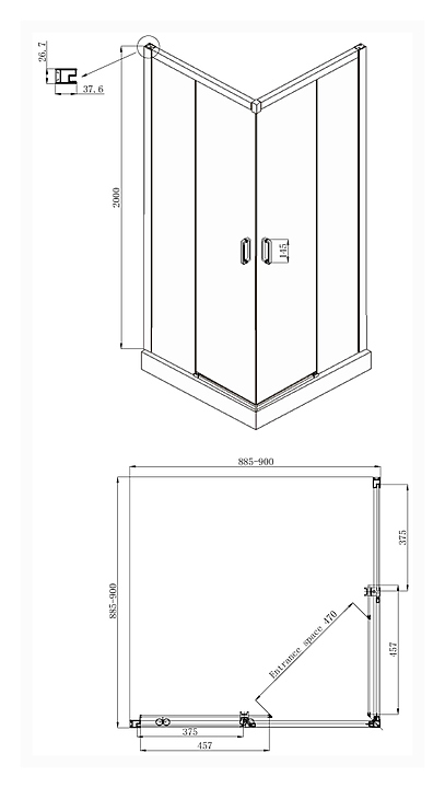 Уголок душевой Ambassador QUEEN 11011104 90х90 см
