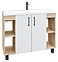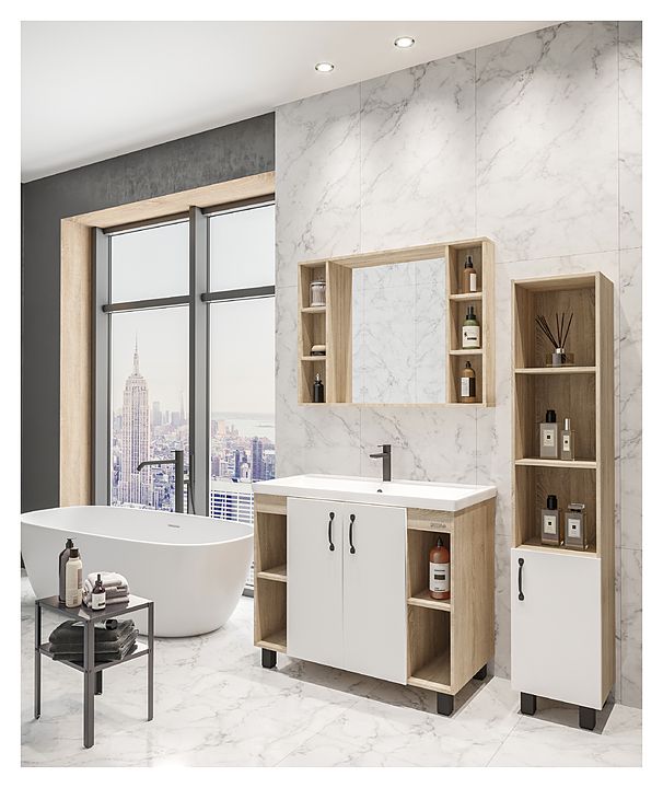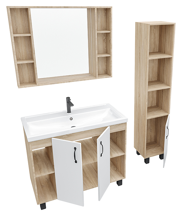 Тумба Grossman Флай 101001 100 см отлично дополнит интерьер любой ванной комнаты. Изделие устанавливается на ножки, что позволяет защитить конструкцию от воздействия влаги в случае намокания пола, а также облегчает уборку. Корпус изготовлен из ЛДСП, которая отличается долговечностью и экологичностью, а также предохраняет от загрязнения и защищает от влаги. Фасад выполнен из МДФ в матовой пленке, которая придает изделию красивый внешний вид. Тумба может использоваться вместе с раковиной Kirovit Фостер 100 см. В комплект поставки входит набор креплений. Особенности: