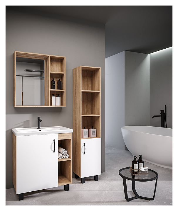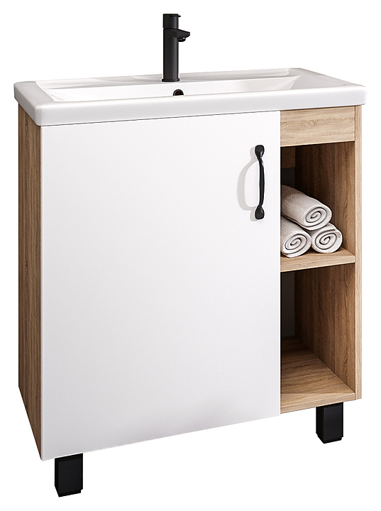 Тумба Grossman Флай 107001 70 см отлично дополнит интерьер любой ванной комнаты. Изделие устанавливается на ножки, что позволяет защитить конструкцию от воздействия влаги в случае намокания пола, а также облегчает уборку. Корпус изготовлен из ЛДСП, которая отличается долговечностью и экологичностью, а также предохраняет от загрязнения и защищает от влаги. Фасад выполнен из МДФ в матовой пленке, которая придает изделию красивый внешний вид. Тумба может использоваться вместе с раковиной Kirovit Фостер 70 см. Особенности: