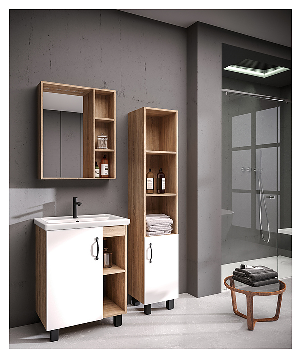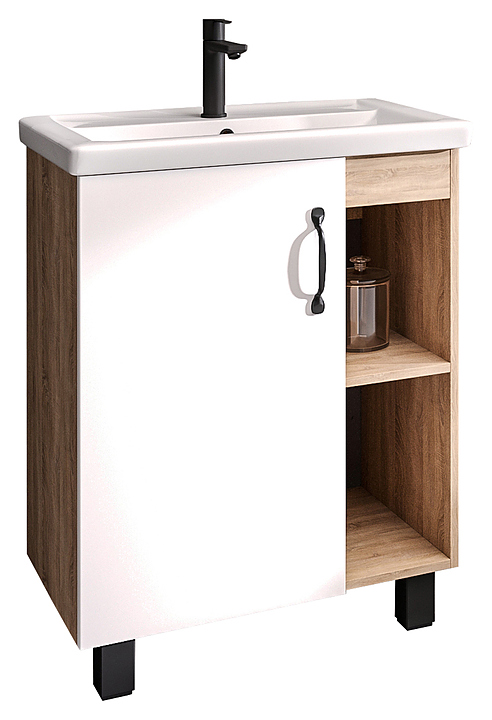 Тумба Grossman Флай 106001 60 см отлично дополнит интерьер любой ванной комнаты. Изделие устанавливается на ножки, что позволяет защитить конструкцию от воздействия влаги в случае намокания пола, а также облегчает уборку. Корпус изготовлен из ЛДСП, которая отличается долговечностью и экологичностью, а также предохраняет от загрязнения и защищает от влаги. Фасад выполнен из МДФ в матовой пленке, которая придает изделию красивый внешний вид. Тумба может использоваться вместе с раковиной Kirovit Фостер 60 см. В комплект поставки входит набор креплений. Особенности:
