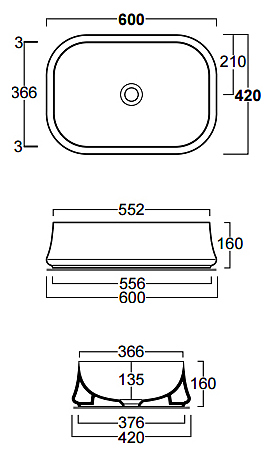 Раковина накладная SIMAS Sharp SH08bi*0 60х42 см, керамика