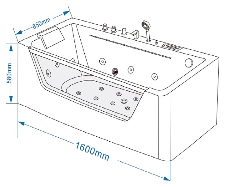 Ванна гидромассажная Grossman GR-16085 85x160 см, акрил