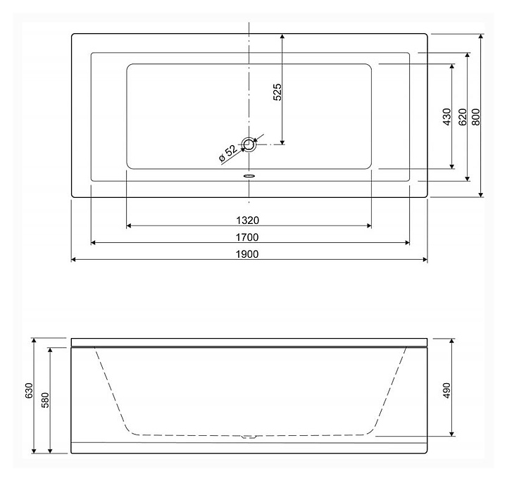 Ванна CEZARES PLANE-190-80-49 190х80 см, акрил