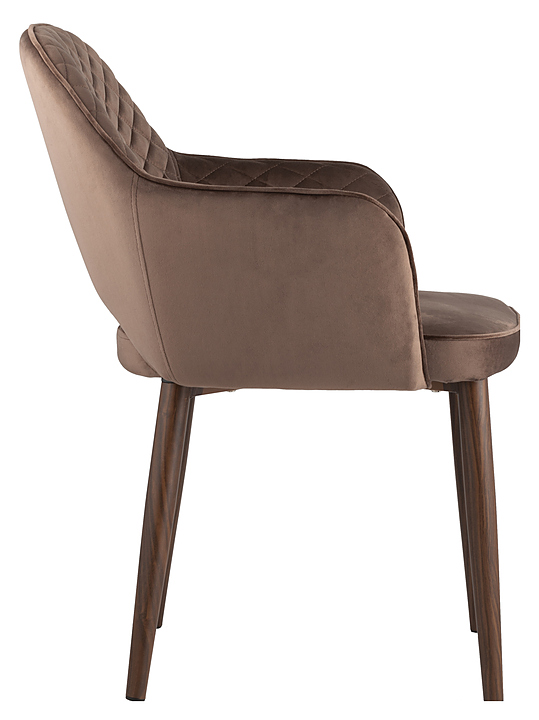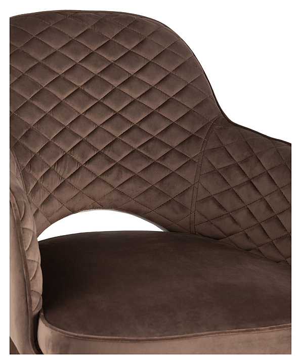 Стул Stool Group Венера диамант велюр коричневый предназначен для для меблировки любой части жилого помещения, от кухни до спальни, а также в кафе и ресторанах. Модель выполнена в современном стиле и оснащена мягким сиденьем и мягкой спинкой с подлокотниками. Опора и ножки стула чёрного цвета и выполнены из металла, обивка - мебельный велюр. Особенности: