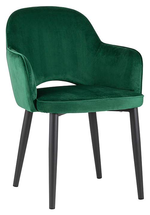 Стул Stool Group Венера велюр изумрудный предназначен для для меблировки любой части жилого помещения, от кухни до спальни, а также в кафе и ресторанах. Модель выполнена в современном стиле и оснащена мягким сиденьем и мягкой спинкой с подлокотниками. Опора и ножки стула чёрного цвета и выполнены из металла, обивка - мебельный велюр. Особенности: