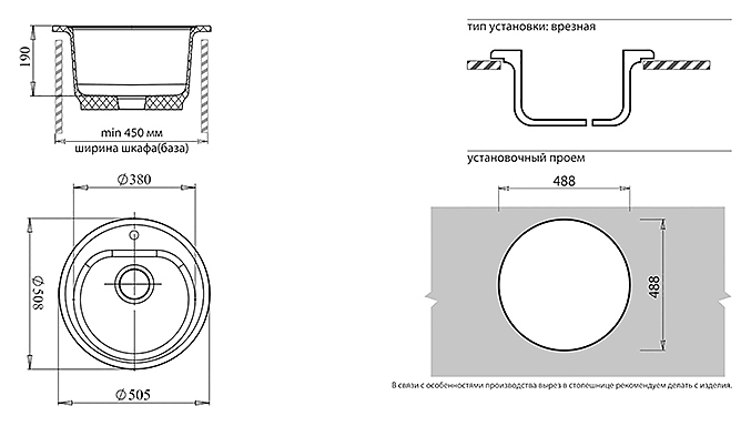 Кухонная мойка GranFest Rondo GF-R-510 предназначена для установки в частных домах, квартирах, офисах, отелях, гостиницах и на различных предприятиях для мытья столовых принадлежностей, посуды, приборов, инвентаря и продуктов питания. Изделие выполнено из мрамора, который устойчив к образованию пятен и воздействию высоких температур. Особенности: