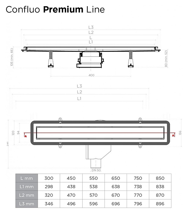 Душевой лоток Pestan Confluo Premium Black Glass Line 650