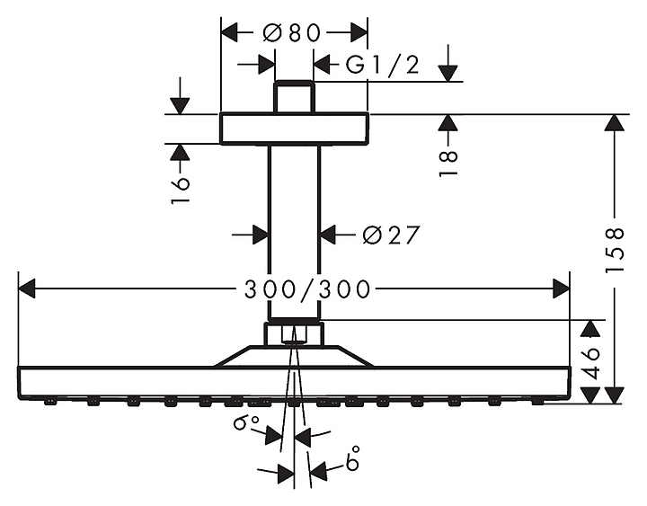 Верхний душ Hansgrohe Raindance Е Air 1jet 300 26250000 благородаря дизайну и продуманным функциям доставляет необыкновенное наслаждение от принятия душа на высочайшем уровне. Модель имеет душевую головку квадратной формы и благодаря встроенной функции предотвращения известковых отложений QuickClean форсунки невероятно легко очищаются. Душ предусматривает монтаж на потолок. В комплект поставки входит верхний душ, потолочное подсоединение. Особенности:
