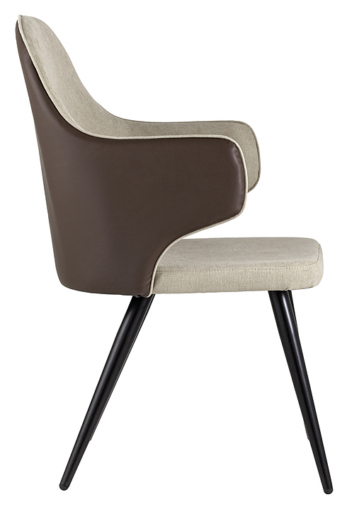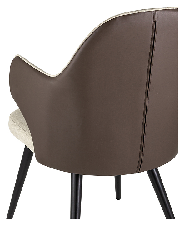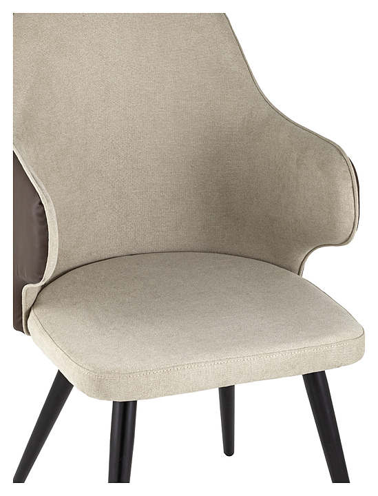 Обеденный стул Stool Group Альдо с подлокотниками бежевый предназначен для использования на даче, дома, для кухни, для бьюти-уголка, а также в кафе, ресторанах и салонах красоты. Модель выполнена в современном стиле и оснащена подлокотниками, мягким сиденьем и мягкой спинкой. Каркас стула изготовлен из металла, обивка из рогожки, а задняя сторона спинки из экокожи. Особенности: