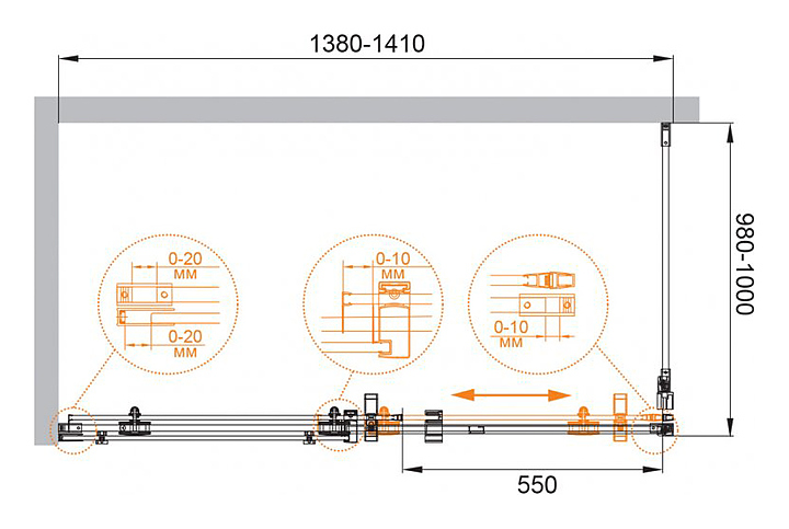 Уголок душевой CEZARES STYLUS-O-M-AH-1-140/100-C-Cr 140х100х195 см