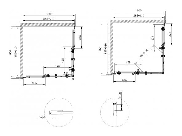 Уголок душевой CEZARES STYLUS-O-M-A-2-90-C-Cr 90х90х195 см