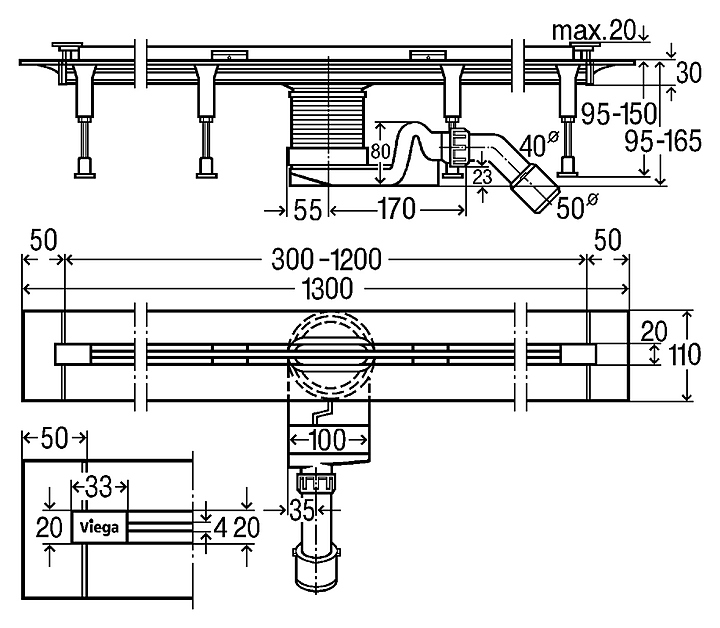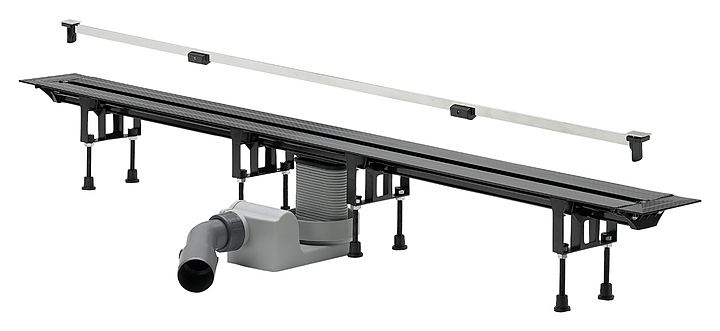 Душевой лоток Viega Advantix Set 704353* предназначен для использования в ванных и душевых комнатах в квартирах, домах, гостиницах, фитнес-центрах, больницах, бассейнах, коммерческие кухни, супермаркеты, рестораны, аэропорты, а также на застекленных балконах. Модель оснащена мокрым затвором, который предотвращает распространение запахов из канализации за счет постоянного наличия воды в сифоне, а также самоочищающимся сифоном. В комплект поставки входят комплект регулируемых опор, торцевые заглушки, сифон с самоочищающейся конструкцией, регулируемое по высоте крепление для декоративной вставки, компенсатор высоты, уплотнительный фланец, комплект принадлежностей для выполнения гидроизоляции, декоративная вставка и шаблон (стусло) для укорачивания. Особенности: