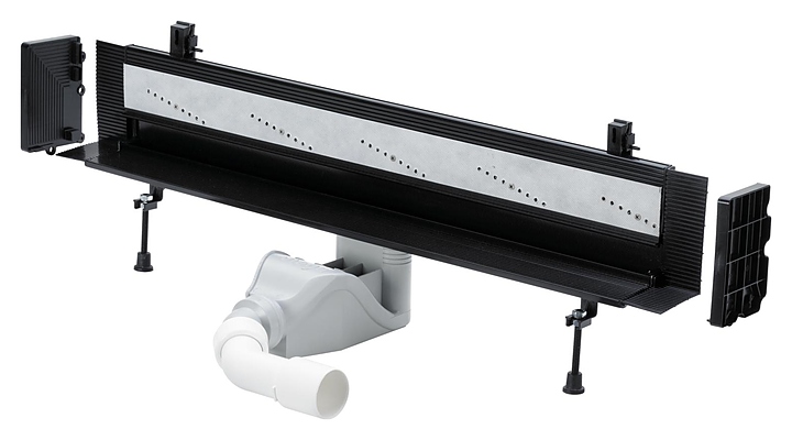 Душевой лоток Viega Advantix Vario 736552* предназначен для использования в ванных и душевых комнатах в квартирах, домах, гостиницах, фитнес-центрах, больницах, бассейнах, коммерческие кухни, супермаркеты, рестораны, аэропорты, а также на застекленных балконах. Модель оснащена мокрым затвором, который предотвращает распространение запахов из канализации за счет постоянного наличия воды в сифоне. В комплект поставки входят комплект регулируемых опор, четыре торцевые заглушки, сифон с самоочищающейся конструкцией, укорачиваемая планка для плитки, съемный сетчатый фильтр, инструмент для регулировки и защиты плитки, ершик для очистки, уплотнительный фланец, комплект принадлежностей для выполнения гидроизоляции и шаблон (стусло) для укорачивания. Решетка в комплект поставки не входит и приобретается отдельно. Особенности: