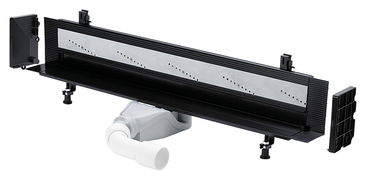 Душевой лоток Viega Advantix Vario 736736* предназначен для использования в ванных и душевых комнатах в квартирах, домах, гостиницах, фитнес-центрах, больницах, бассейнах, коммерческие кухни, супермаркеты, рестораны, аэропорты, а также на застекленных балконах. Модель оснащена мокрым затвором, который предотвращает распространение запахов из канализации за счет постоянного наличия воды в сифоне. В комплект поставки входят комплект регулируемых опор, четыре торцевые заглушки, сифон с самоочищающейся конструкцией, укорачиваемая планка для плитки, съемный сетчатый фильтр, инструмент для регулировки и защиты плитки, ершик для очистки, уплотнительный фланец, комплект принадлежностей для выполнения гидроизоляции и шаблон (стусло) для укорачивания. Решетка в комплект поставки не входит и приобретается отдельно. Особенности: